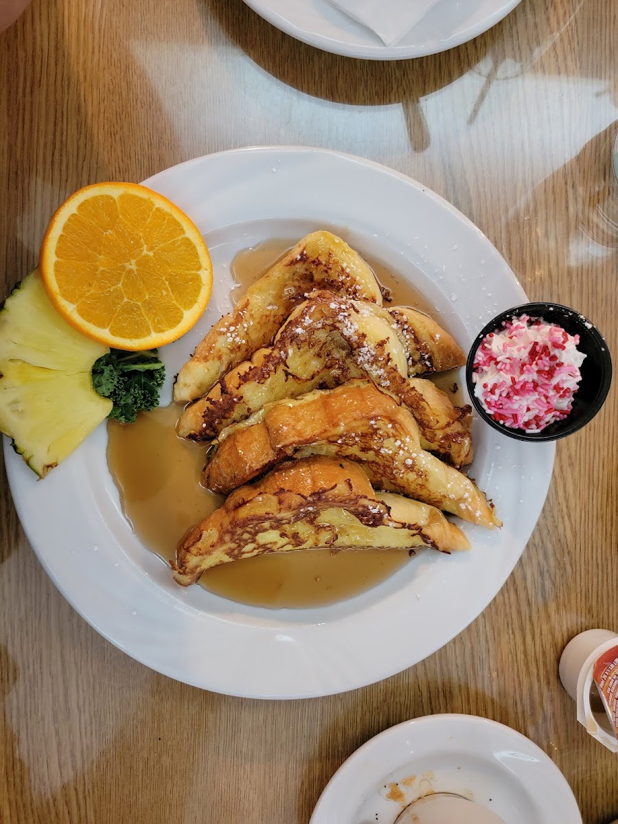 Was in town to see the Christmas decoration with some friends, I have eaten here before I suggested this for our breakfast the morning we were leaving. Everyone loved the food. Plus we all stopped by the bakery and took stuff with us. The blueberry cream cake we had for breakfast the next morning on the road was amazing. The apple strudel was delicious